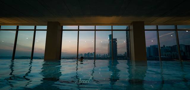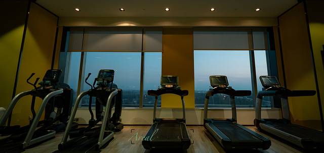除了客房,再来看看健身房、泳池这个景观。运动时还能享受视觉盛宴,它不香吗?