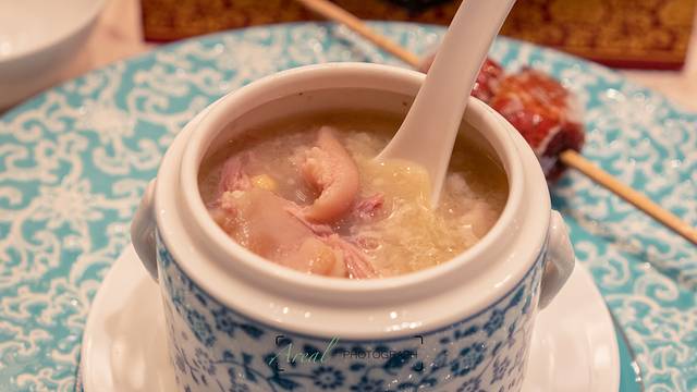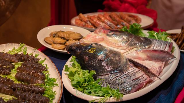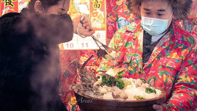 除了来自松花江的超大鱼头,还有每只都比手还大的虾、海参、鲍鱼、鹅掌、排骨……多种珍贵食材,再加老火高汤炖煮,味道请自行想象吧,此刻的我又默默咽了几下口水。