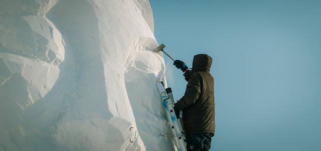大型的雪雕作品相当壮观,小型的又很有趣。当时还有些冰雕艺术品正在快马加鞭的制作中,多人协同工作,每位参与制作者都是艺术家。