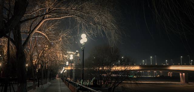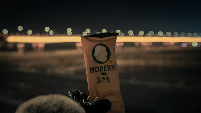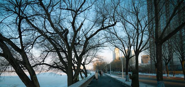 下午四点路灯亮起, 东北 的冬夜来的如此猝不及防。暖意融融的橙色光源充满欺骗性,此刻可是零下二十多度呢。在江边吃雪糕是强大的自我修养。