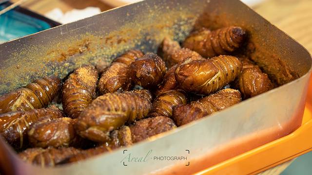 烤蝉蛹也是 东北 烧烤中不可或缺的食材,我忠爱蛋白质在口中爆浆的感觉。