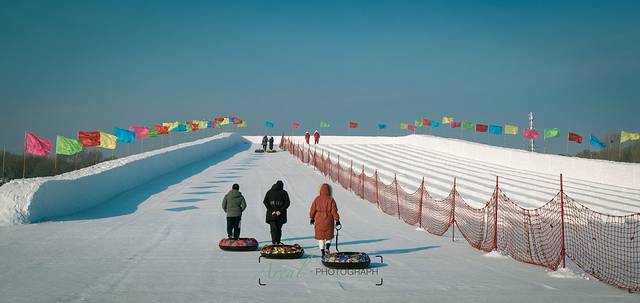 冬季里冻结的松花江冰层可厚达几十米,成就人们的天然游乐场。