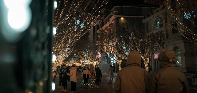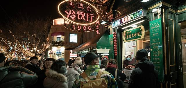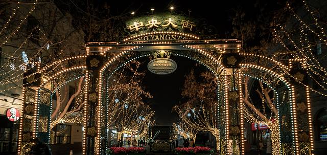 夜晚的中央大街在霓虹的喧闹中撒发着冬日的暖意,美的无与伦比,游人如织。吃上一根马迭尔冰棍或者一顿俄式大餐才算没白来。