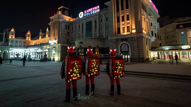 广场的夜景自带魔法滤镜,好像到了哈利波特中的火车站台, 哈尔滨 最美的时刻也跟着到来。