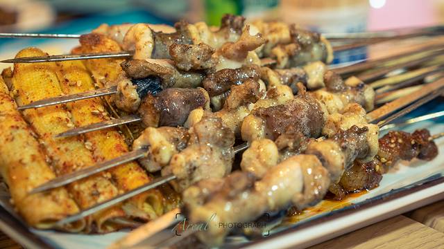 我喜欢的烧烤一定要碳香十足,肉类肥瘦相间,素菜香辣带酥。我亦不爱南方烧烤的甜味、 奥尔良 口味等过度调味,简单的辣椒、孜然、盐加上好食材最适合我。所以,没来 东北 之前我就许愿一定要吃上至少一顿烧烤,在小胖的带领下,夙愿特意实现,特别满足。