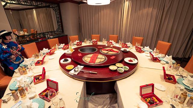 可到了 哈尔滨 ,尤其是走进哈香香宫中餐厅的包房后,才知道之前的阵仗真是弱爆了。此刻一个可以围坐20人的超大型桌就在面前,桌中有桌,桌中在有炉。