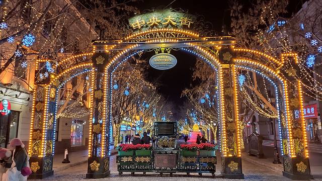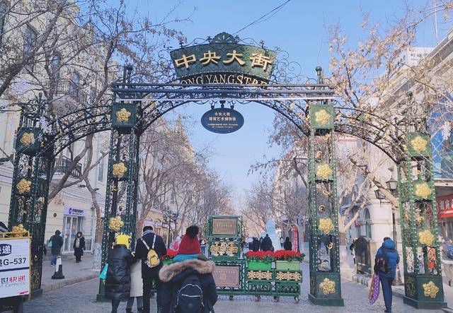 中央大街,就是一条洋化的商业街,路边有各式各样的冰雕和俄式建筑,俄罗斯特色商品店,哈尔滨特产,华梅西餐厅,迭尔代冰棍等很多网红店都在这边。因为刚刚来,对一切都充满新奇感,左看右瞧,冷的时候就躲进商铺或者商场暖和暖和,走完一条街也就1公里不到的中央大街,用了2个多小时不止。