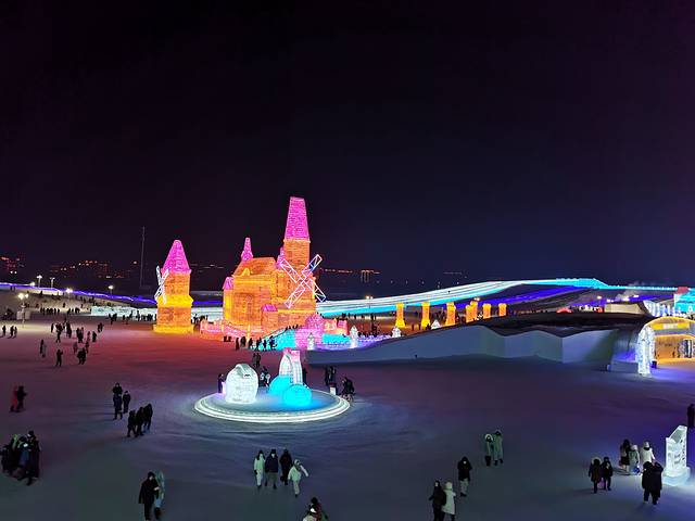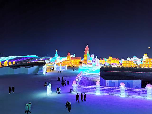 冰雪大世界,往年门票都是330元/人,今年90块/人,中央大街有很多公交到,营业时间是早上11点-晚上22点,因为疫情影响,听说规模有所减小,不过也没差多少,是想带动当地人消费吧,很多人本地人都没去过冰雪大世界,今年去的人很多。里面所有娱乐项目都不另外收费,就是排队都要很久,有40多个各种各种的冰雕形状。在门外记得买一个类似滑板的东西,10块-15块,就是用来滑梯的时候坐的,这个很刺激,我们进去之前不了解用途就没有买,在里面跟几个小姐姐借来滑了一次,觉得不过瘾,后来排队玩雪圈的时候,有两个小哥哥拿着两个滑板突然过来问前面的几个人要不要滑板,都以为是卖东西的,不要,刚好我们没有,就问多少钱,结果说不要钱,送我们了。。。好尴尬。。。哈哈。最后玩了好几回滑梯。里面还有雪上自行车,极速滑道,雪圈(雪圈建议去伏尔加庄园再玩,高点很刺激,人也不多,也是免费,冰雪大世界底速度也慢,人排队人长,浪费时间,直接去排队极速滑梯)等等,就是排队都要好久,我们5点进去,快10点才出来,玩了4个小时,就玩了3个项目,因为队太长了,极速滑道排队都是1小时+,其他项目排队多多少少都要半小时不止 。