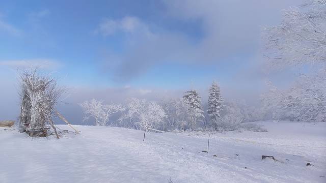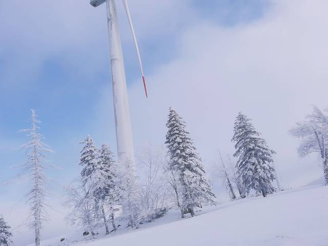 风车雪山,进去十里画廊,没有什么看点,还号称动物园,就几只狍子,鹅,麋鹿(根本没有什么看点,还说什么动物园,巨坑),导游还忽悠说什么跟他们互动,就那么几只都不理人,然后就坐观光车,再坐雪地摩托到山顶,雪地摩托真的很刺激,得抓好前面的司机,特别是下来的时候,简直是速度与激情。山顶是真的好看,风车,雾凇,但是风太大了,吹得大雪纷飞,刮的脸疼,太冷了,上去没撑住多久就赶紧下山了。。。大秃顶山推荐去,但是千万不要跟团,太坑了!
