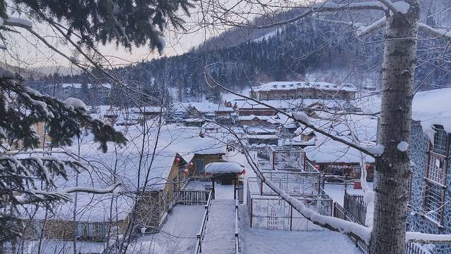 雪乡,门票好像是120块/人,但是想看雪乡最佳观景台,就得买梦幻家园+二人转捆绑票,200块,其实可以从栈道上去,也能观赏到高处下雪乡的美,虽然没有梦幻家园看上去角度好看,但是也是能看得到雪乡1/3的美了吧,雪乡本来也没多大,从门口走到尽头也就10多分钟。晚上还有篝火晚会,其实就是个年轻人狂魔乱舞,释放自己的动次打次晚会,一小时左右,没有篝火的篝火晚会,小小的狂欢。二人转也一般,可能是因为不懂这一行吧。