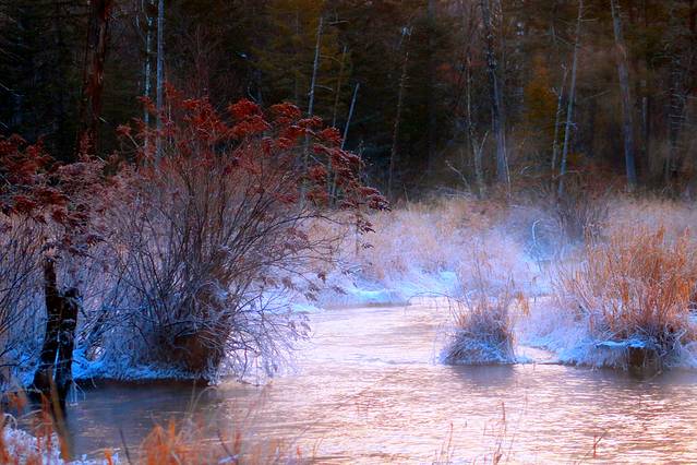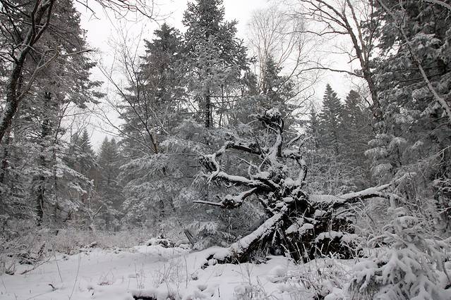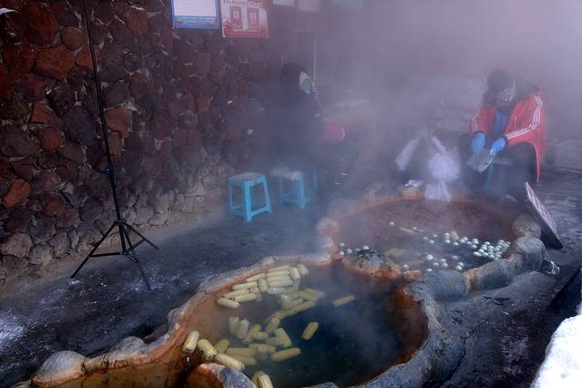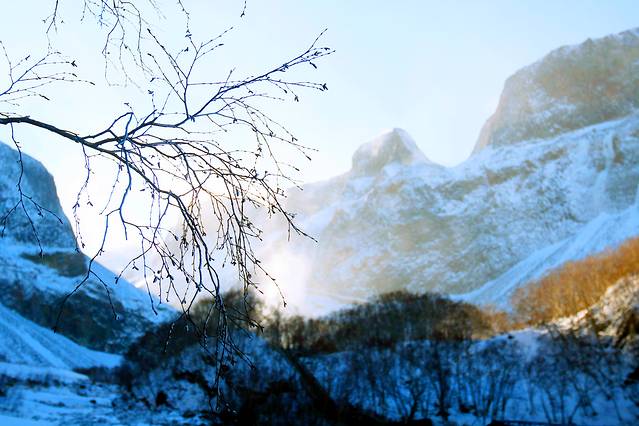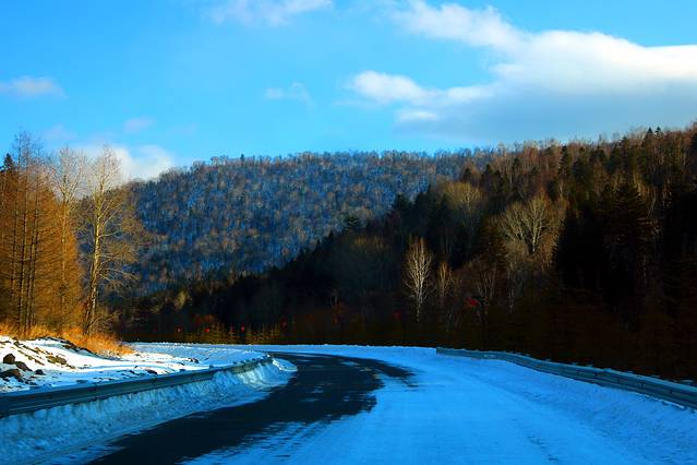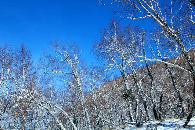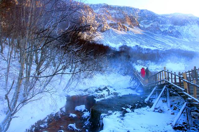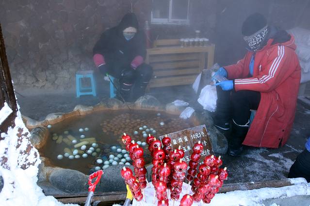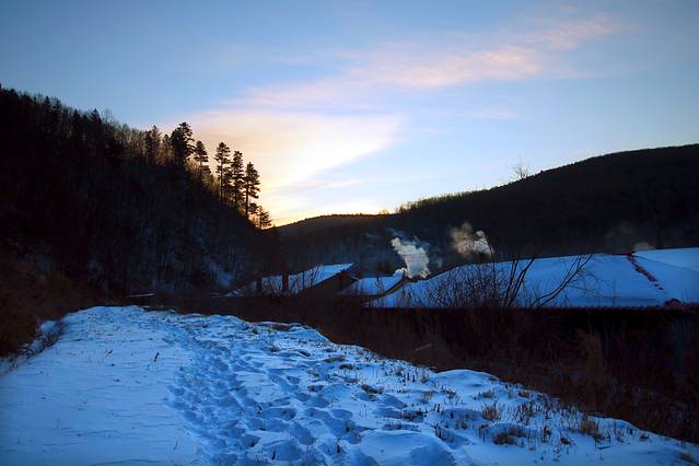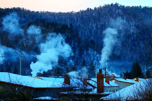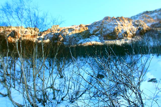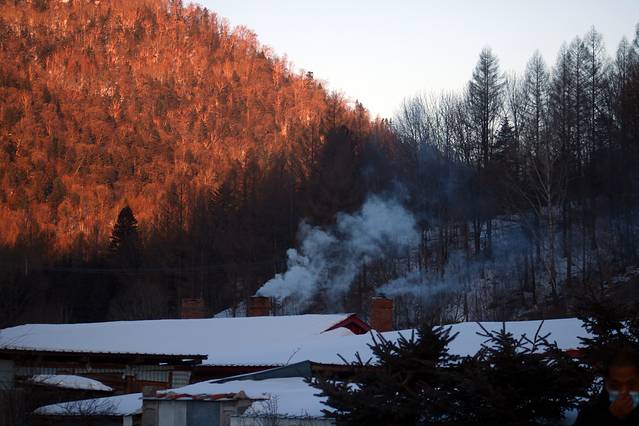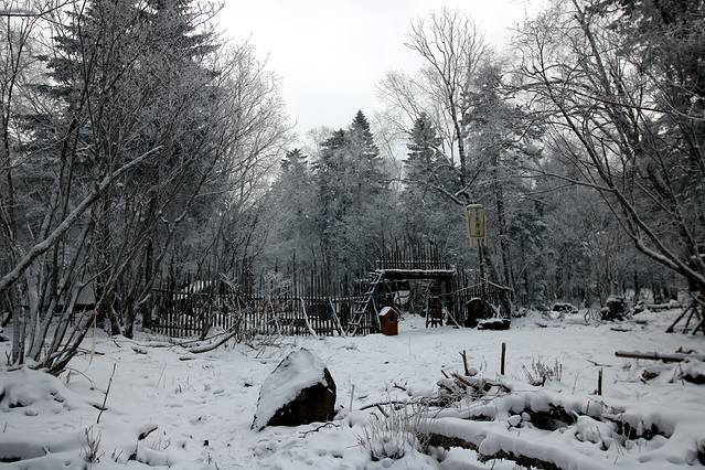 每年的十月开始,这里就被皓白的大雪所覆盖了,西伯利亚南下的寒流和日本海北上的暖流在这里交汇,都想越过高高的枕头峰把对方压倒,两种气旋搅合升腾,形成了厚实的降雪锋面,因此,这一区域降雪频繁、雪量极大。