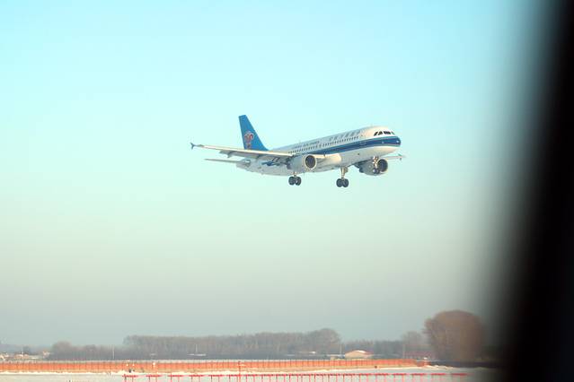 购买的机票在中午时候,要转机,第一站广州~天津,第二站天津~哈尔滨。