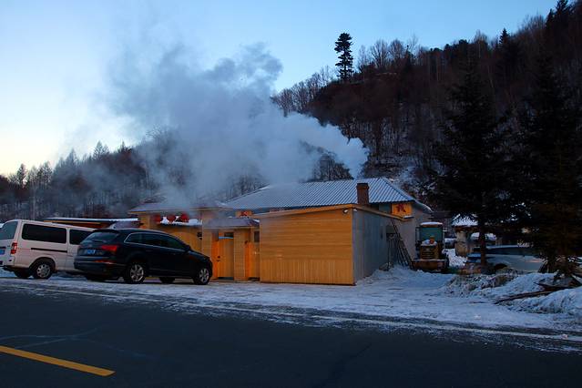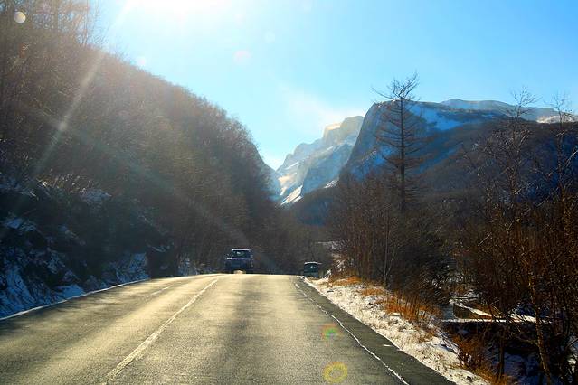 车本来走的国道,但拼车的人中有人赶火车,司机要求每人加了8元走高速,这是新建的高速路,路上各种标志也没安装好,不过还是可以走,时间快了半小时,下午17:00到达二道白河小镇。