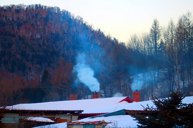 早上路上还没行人,但各家早起煮早饭的炊烟却已升起。