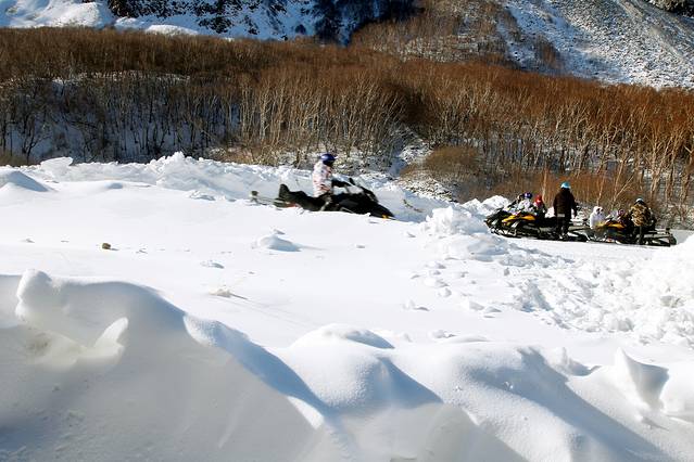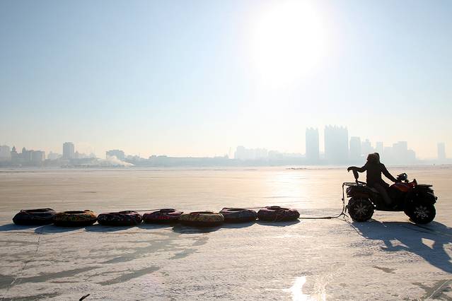 有人在玩雪地摩托车,不过风驰电製虽然不错,但冷风吹来,也不太好受。