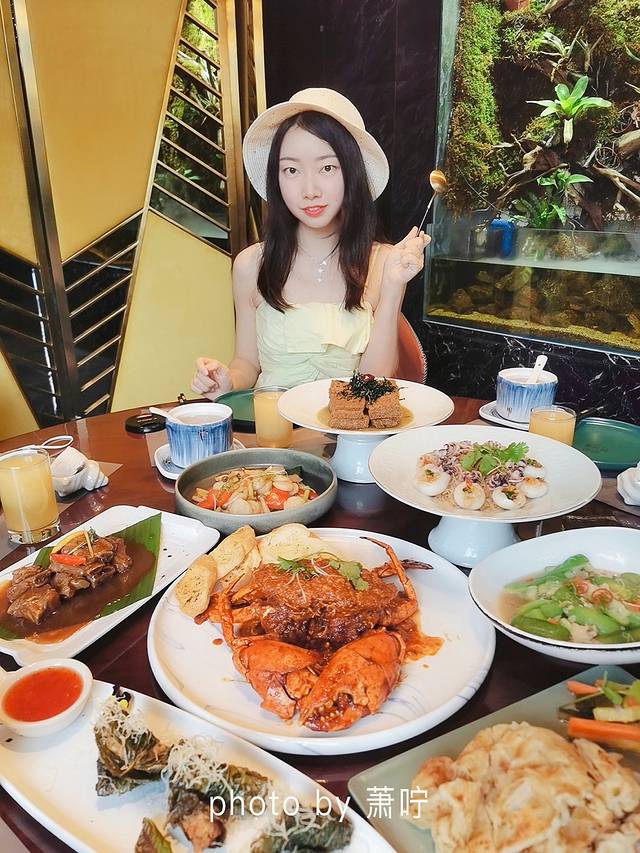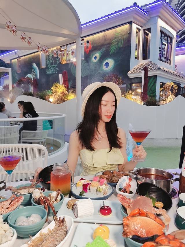 大悦洋雨林海鲜自助餐厅,户外用餐,绿植、流水烟缭绕,同样也是氛围感十足,真的很有热带雨林的感觉~夜晚在这里用餐,吃着海鲜,吹着微凉的风,真的不要太舒服了~