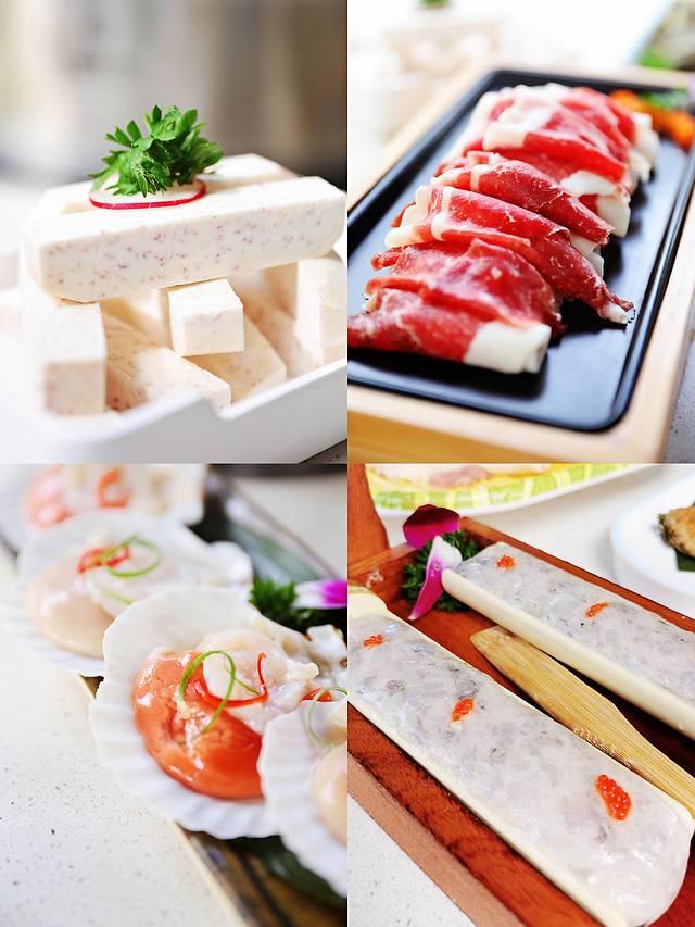 文昌鸡,鸡肉细嫩,鸡皮薄而q弹,沾着海南风味的调味酱汁吃,味道好极了!吃完鸡肉,可以再涮些扇贝、牛肉卷、虾滑、芋头、蔬菜等,其中我对芋头是情有独钟啊,芋头遇上椰子鸡火锅,充分吸收了汤底的鲜甜,加上松软的口感这么,真的让人欲罢不能!