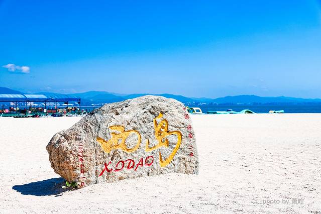 上岛后,和人群反方向走,从左手边这条海滩先玩起~左手边是通往西岛渔村的,途径的沙滩很干净,可以开心的下海玩水~西岛的水清澈见底,早上10点多光线强,海水非常蓝!早上这一侧人很少,适合一边走一边拍照。