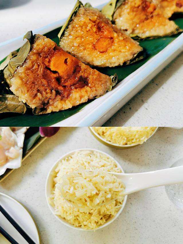 另外,他家的黑猪肉咸蛋黄粽子,黑猪肉和咸蛋黄包在一起,有着粽叶的清香,一口咬下去,尽是肉香蛋香的美味。很贴心的切成4小块,吃起来很方便~