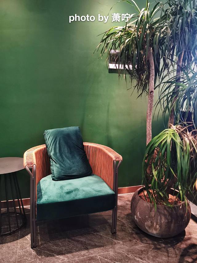 锵锵蟹,海角院子进去能马上看到了。锵锵蟹,环境以高级的墨绿色为主,中西结合现代风十足~包厢水缸时不时还会散发水汽出来,感觉很凉快~从外面的大太阳躲进来,扑面而来的凉爽让人一下子就舒服了不少~