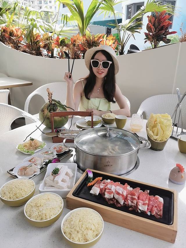 在海角小院也有椰子鸡—小院椰子鸡,在户外椰子树下吃椰子鸡火锅,环境氛围感满分了~有遮阳伞的保护下,吃着椰子鸡火锅,一点也不觉得热~