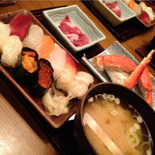 公道的价钱,可以品尝北海道的时令食材而闻名的居酒屋。 在鱼缸里,牡丹虾和鱿鱼悠闲地游泳,有定期的金枪鱼拆解表演。此店特色海鲜菜单包括受欢迎的“ 脏脏鲑鱼子盖饭”,不是鱼子脏脏,而是日本很有特色的一种把菜摞的很高,以至于溢出饭碗,所以我给起名脏脏盖饭哈哈。。。无聊的知识是不是又增加了。另外活鱿鱼刺身也就是视频上常有的,鱿鱼跳舞也有。 除了海鲜外,还有当地的新鲜蔬菜,烤鸡和成吉思汗的菜单,在这里,无论年龄和性别,都可以品尝北海道美食。