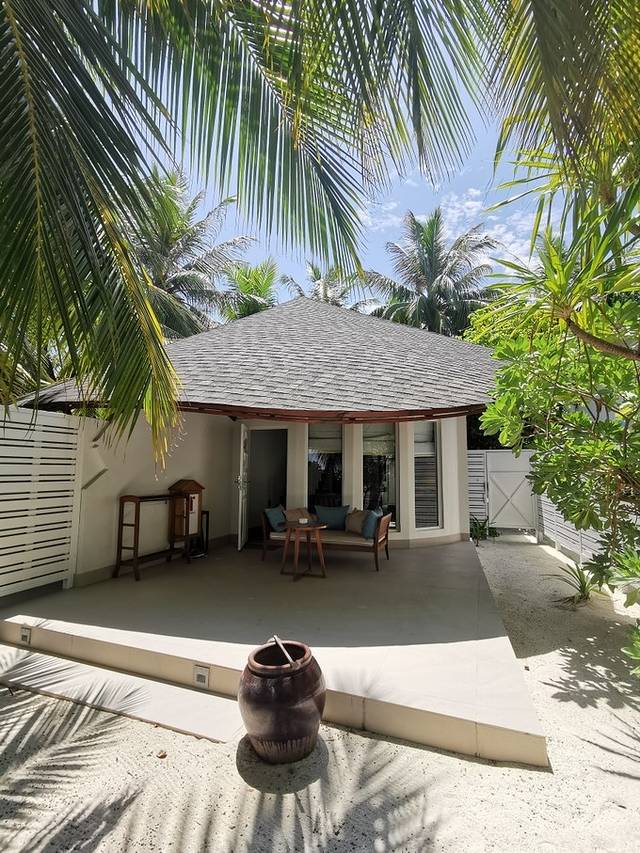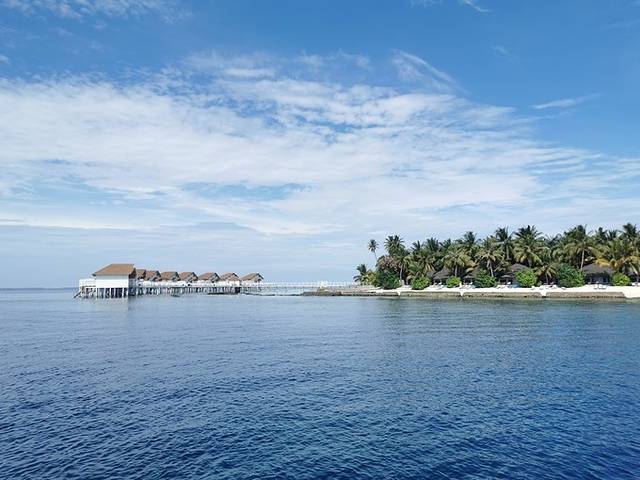 初见 马尔代夫 ,美丽的无以言表,感觉真的是世外 桃源 吧。阳光很热,我和老公睁不开眼睛。来客会在中央酒吧热情接待,因为房间理论是下午3点才能入住,很幸运有两位中文管家,来玩的游客也很多国人,传说中马代游客 中国 人占40%。我们超级幸运12点房间就准备好了,于是我们兴奋的来到我们的小沙屋,行李会有小黑帮忙运送。但是沙屋换水屋的时候就没有那么幸运了,等到下午三点钟才住进去。