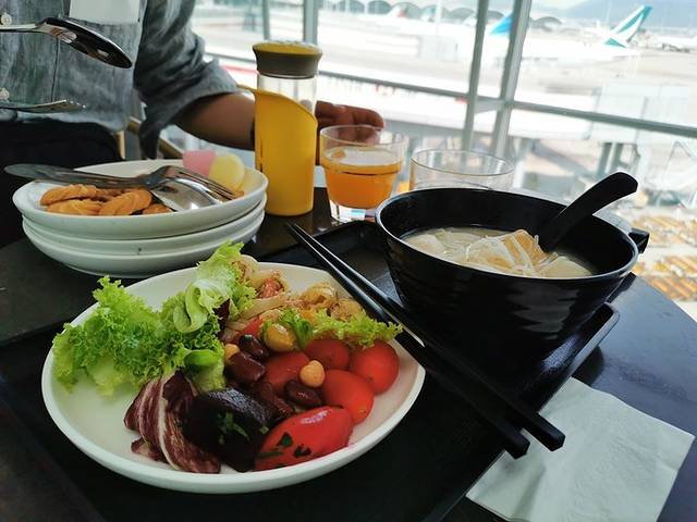 终于,我们出发拉,值得一提的是, 香港 国际机场真的超级大,里面有各种品牌店,足足可以逛一天,而且贵宾休息室用餐体验非常好,国泰航空飞机餐也很讲究。