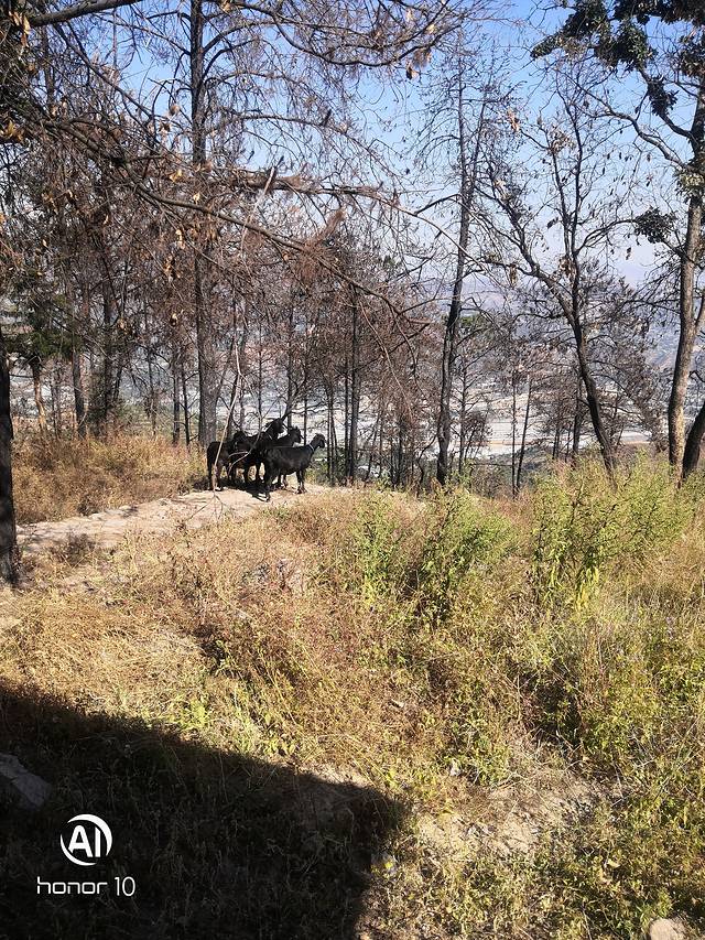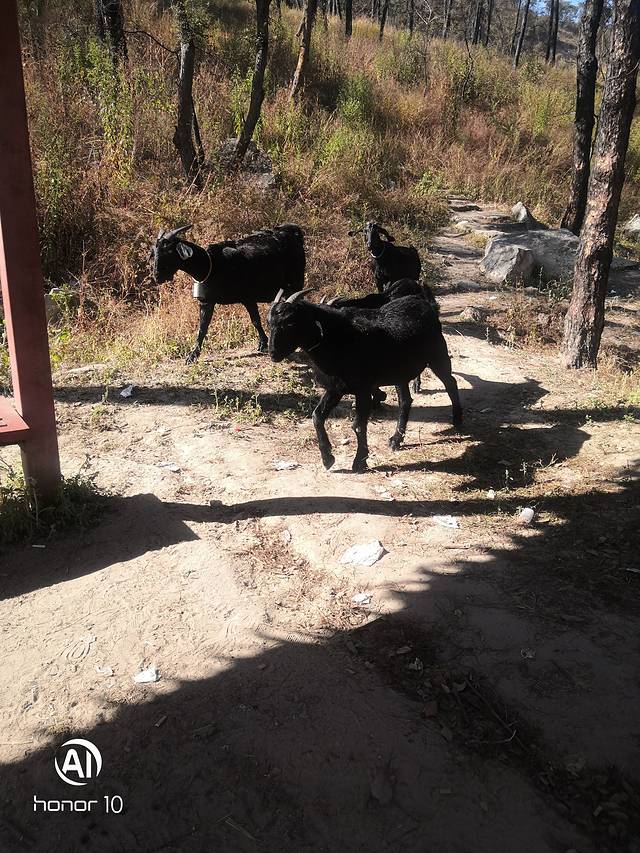 14.35分半山腰凉亭,遇见当地产四只黑山羊下山来,迳直走进凉亭!!