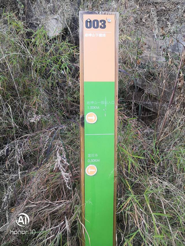 右边通往莲花寺一条路,线路二:路程最短(1.59千米)。左边一条通往岩神山顶,线路一:路程长(3.17千米),在莲花寺和线路2交汇。
