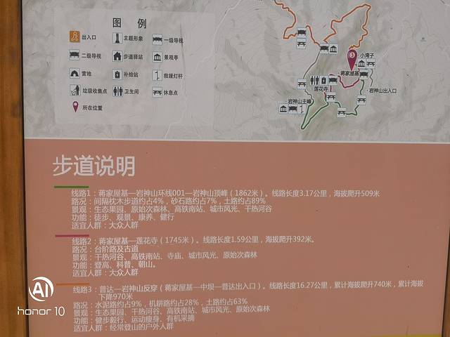这条线有两个凉亭供休息。山路崎岖略显陡峭。注意:量力而行,有恐高症年老体弱不要爬!