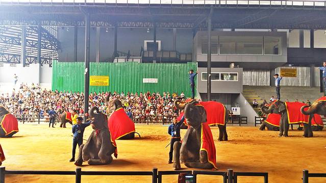 在东芭乐园 有三项:民俗表演、大象表演、热带植物园。我们首先走入 剧场,观看泰国民俗表演。之后可以看大象表演,然后是参观这个大花园。不过导游也带着我们看了主人的车库,超级豪华啊,这么多车,天天换新的开都换不过来。