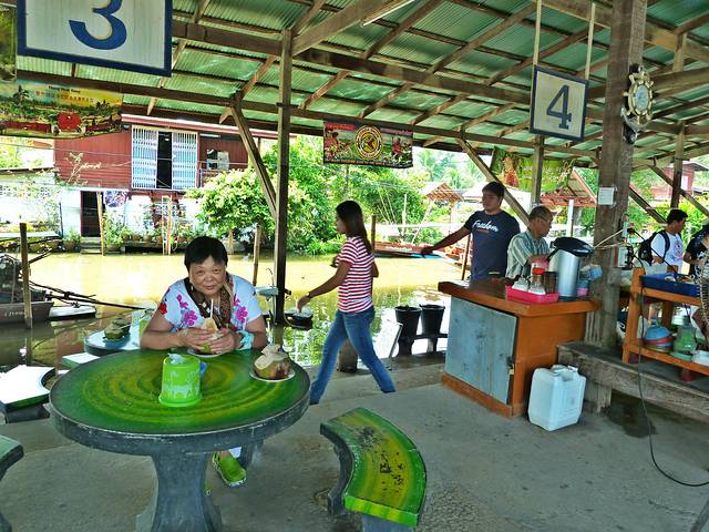 我走错了入口,本来我想都是水上市场,哪个口不一样啊。刚进来时,有人热情的送椰汁给我们喝,我就感觉吧这事情有点问题了,哪有免费吃喝啊,除了曼谷航空的休息室我还真没看见哪个景点有不花钱就送水果的呢.......