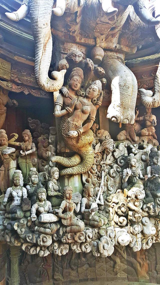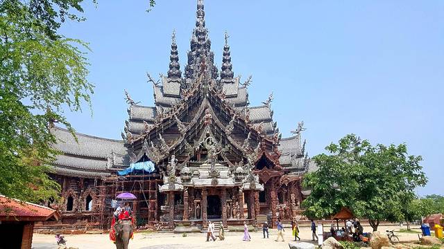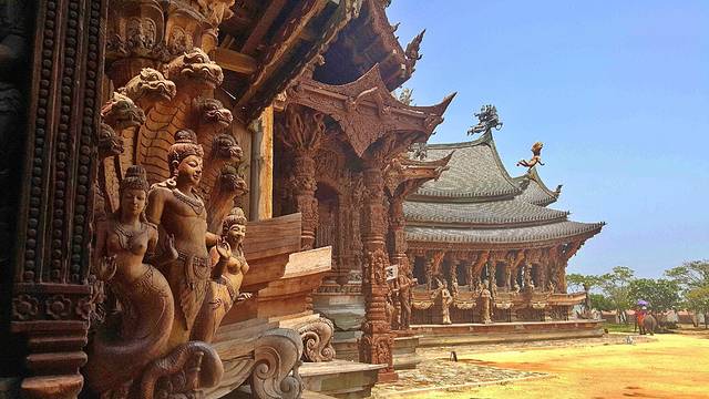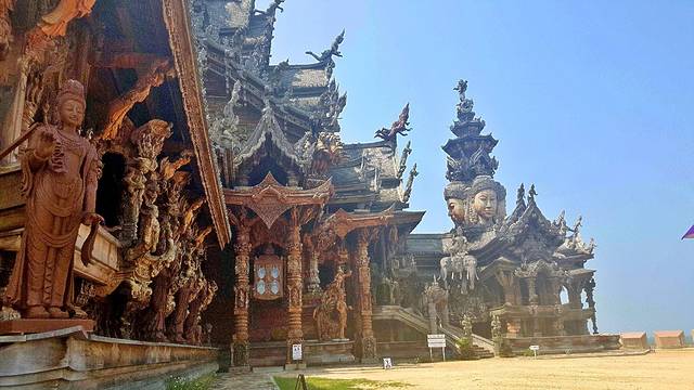 真理寺的门票500泰铢,这里没有团队,所以可以静下心来看。有免费的中英文讲解。一定要听讲解,否则就属于走马观花了。真理寺会分时间段放入客流,不会形成人满为患的场景,而且服务人员都很和蔼可亲的,还会跟你聊上几句。