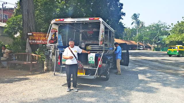 在街上直接打了一辆双条车,要200泰铢到真理寺,几经还价100泰铢到真理寺。老妈第一次做双条车,还是挺兴奋的。