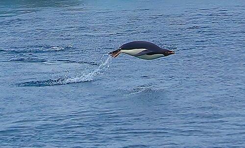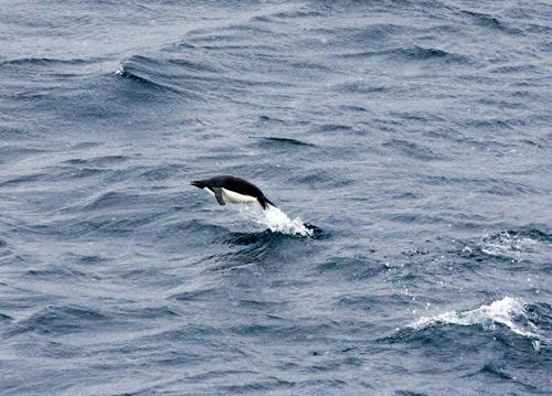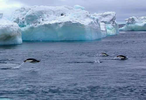 海中有企鹅的天敌——豹海豹。企鹅们下海时,一定是排队等待谁先第一个跳下去。当有第一只企鹅跳下去时,其他企鹅才迅速地跳下去,选对时间至关重要。