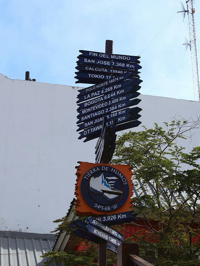 这个在离南极最近的火地岛国家公园里,最南端海湾边上用木板和瓦楞铁皮搭建起来的小屋,就是“世界尽头的小邮局”。特色的地理位置决定了它的独一无二。邮局里出售印有“世界尽头邮政”字样的明信片,可以现场填写后寄往世界各地,还可以拿你自己准备好的明信片,让邮政人员帮你印上带有企鹅图案上的印章。盖一个章收费5比索。先将准备插到南极的“思源客”旗帜插到这个世界最南端的小邮局!