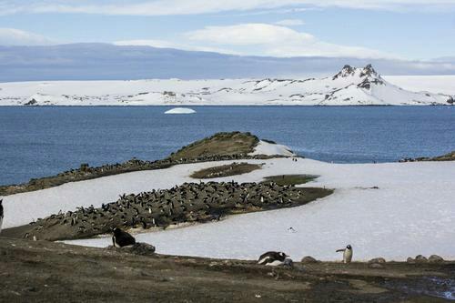 山顶上的另一个火山口。路边(探险队员划定)到处都是抱窝的企鹅。