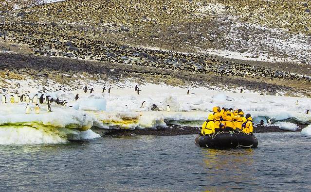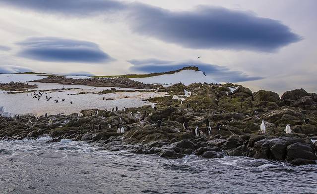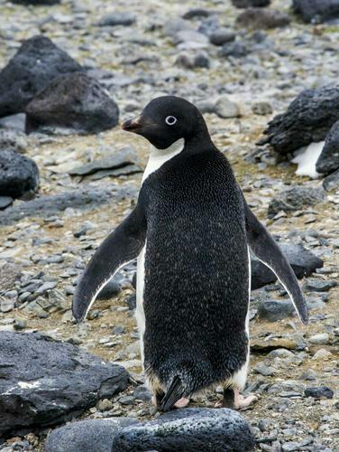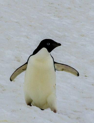 第二天到保莱特岛Paulet Island,它是在南极半岛格雷厄姆地,属茹安维尔群岛的一部分,南极半岛东北端4.8公里(3英里),邓迪岛东南以5.2公里的威德尔海,位于南纬63°35′,西经55°47′。保莱特岛是一个圆形岛,长2.2公里,宽1.5公里,面积3平方公里。由火山熔岩流组成,有一个小的陨石坑,最高点海拔353米。岛上有超过20万的阿德利企鹅。