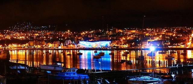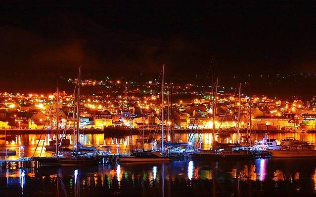 半夜1点跟同房间的小李出来,大街上找了一辆出租车,跟司机说想去能看到乌斯怀亚全景的地方。不懂西班牙语啊!用咱蹩脚的中式英语跟阿根廷司机不流利的西(班牙)式英语交流了半天,依靠手机中的地图,总算基本说清意图。出发到一个小山包时,没公路了,下车打着手电探查一番,回来跟司机说右边可以土路绕上山顶。老阿司机真棒,二话不说,硬是开到山顶。拍照地点不知道,第二天白天都不能确定具体的位置,就知道最后开到一个小山包上。估计一般人也不会跑到这里拍夜景。拍照完回到酒店已经2点多了。给司机结账(打表)160多比索,没零钱给了200,司机不要楞找回50比索!可爱的南美人!