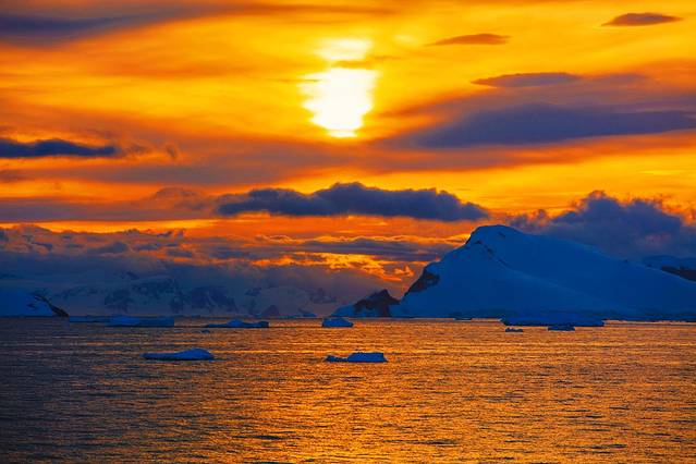 一提到雪山冰川,一般都想到青藏和帕米尔高原及天山上的雪山与冰川。而提到南极,给人是一种遥不可及的神秘梦幻却又气候恶劣的印象。而当真正踏上南极的土地,才发现:这里没有恶劣的暴风雪,只有懒洋洋的企鹅与海豹,翱翔天空的海鸟,与白云混合在一起的纯净壮美的雪山冰川。南极大陆98%的地域被一个直径为4500公里永久冰盖所覆盖,其平均厚度为2000米,最厚处达4750米。南极夏季冰架面积达265万平方公里,冬季可扩展到南纬55度,达1880万平方公里。总贮冰量为2930万立方公里,占全球冰总量的90%。如其融化全球海平面将上升大约60米。南极冰盖将1/3的南极大陆压沉到海平面之下,有的地方甚至被压至1000米以下。南极冰盖自中心向外扩展,在山谷状地形条件下,冰的运动呈流动状,于是形成冰川,冰川运动速度从100米至1000米不等。每年因断裂而被排入海洋巨型冰块则形成冰山。沿海触地冰山可存在多年,未触地冰山受潮汐与海流作用漂移北上而逐渐融化。