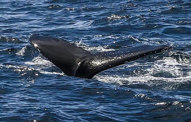 须鲸(学名:Balaenoptera)是须鲸类动物总称,体长约为15~20米,体重25吨左右。背部黑色,腹部白色,交界线波状或云状,过渡区呈灰色。鳍肢和尾鳍的下面为灰色。背鳍呈镰刀形,向后倾斜。每侧的须板为300~400枚,为黑色,故称“黑板须鲸”。喷出的水柱又高又细,垂直。