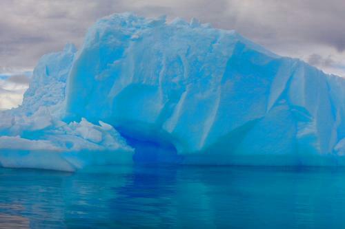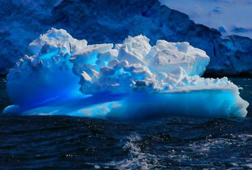 高速航行中看到一块美丽的蓝冰。我相信任何画家都调配不出这美妙、纯净、通透的蓝色,也只有在南极这么纯洁的地方,才能看到如此纯净的蓝色。
