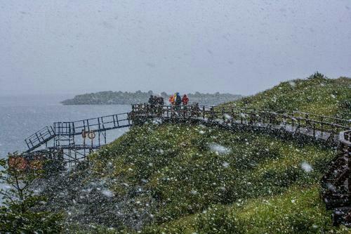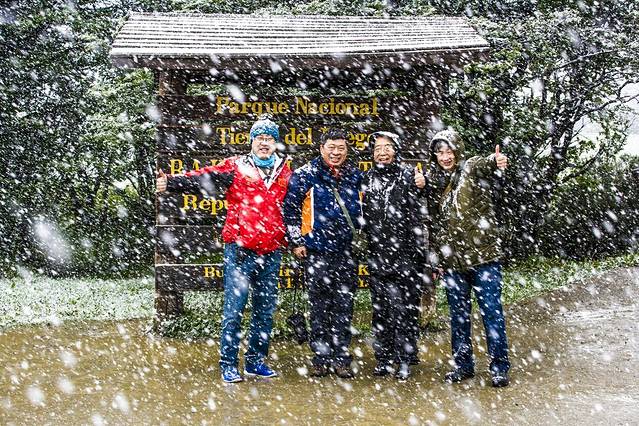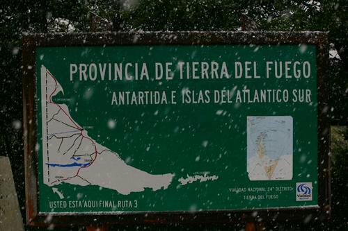 乌斯怀亚,这座世界最南端的城市,虽然被成为世界尽头,但是3号公路才算是真正的尽头!冒着鹅毛大雪赶到这里,3号公路由柏油马路变成了结实宽敞的土地,终点的前面是一排排的木桩挡在前面,再向前就是南极和大西洋群岛。雪太大了,已经没有人敢用相机拍照了,咱也是第一次在这么大的雪中用相机拍照,5dsr收起用1ds MII!冒着鹅毛大雪在乌斯怀亚 “阿根廷国家三号公路尽头”的标志牌前给极友们拍照。拍照时有老外过来热心提醒: 雪太大,相机会损坏!使用十年的老伙计第一次历经考验!上面标注:这里是泛美公路的终点,距布宜诺斯艾利斯3,079 公里,沿泛美公路北上至美国阿拉斯加则有17,848公里,绕地球半圈。找机会自驾一次应该很有挑战性!