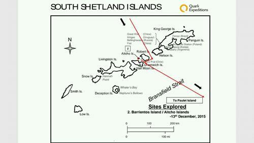 我们登陆的第一个南极岛屿是巴里恩托斯岛Barrientos。它是在南设得兰群岛埃特绍群岛的岛屿,格林威治岛北部,迪岛东北1.1公里(0.68英里),塞拉岛以东900米(980码),位于南纬62 ° 24′22″,西经59 ° 44′53″,长1.71公里,宽0.54公里,面积65公顷。