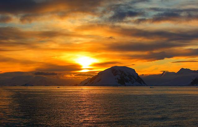 目前我们还在南极圈外(南纬66°33’),夏季没有极昼,但有类似于极昼的白夜现象。在12月份的午夜0点,南方的天空晚霞与晨曦交相辉映。每天不到4点天就亮,只有3个小时算是夜晚。由于我是一个很少拍日出的懒人,这里3-4点就日出,我是一天都没起来过,不知道南极的日出跟晚霞与晨曦交相辉映有什么区别?晚霞到是拍了几张大笑大笑