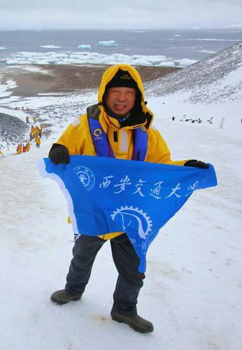 这山坡又陡有滑,风也大,把思源客旗帜插到南极不容易啊!非常感谢探险队员们,是他们先给我们踩出一条路,否则更难走。尤其下山时,每走一步都要重重的把后脚跟跺下。