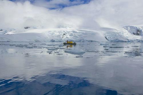 冲锋舟在冰块上行驶时,冰块划的声音非常大,真怕哪块锋利的冰块把船底划破,掉到冰冷的南极海中可不是好玩的!