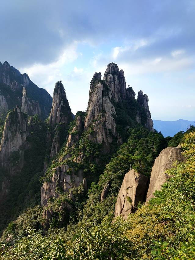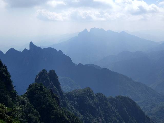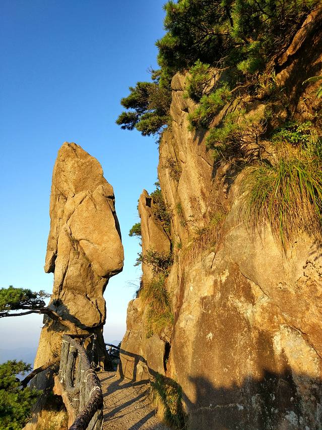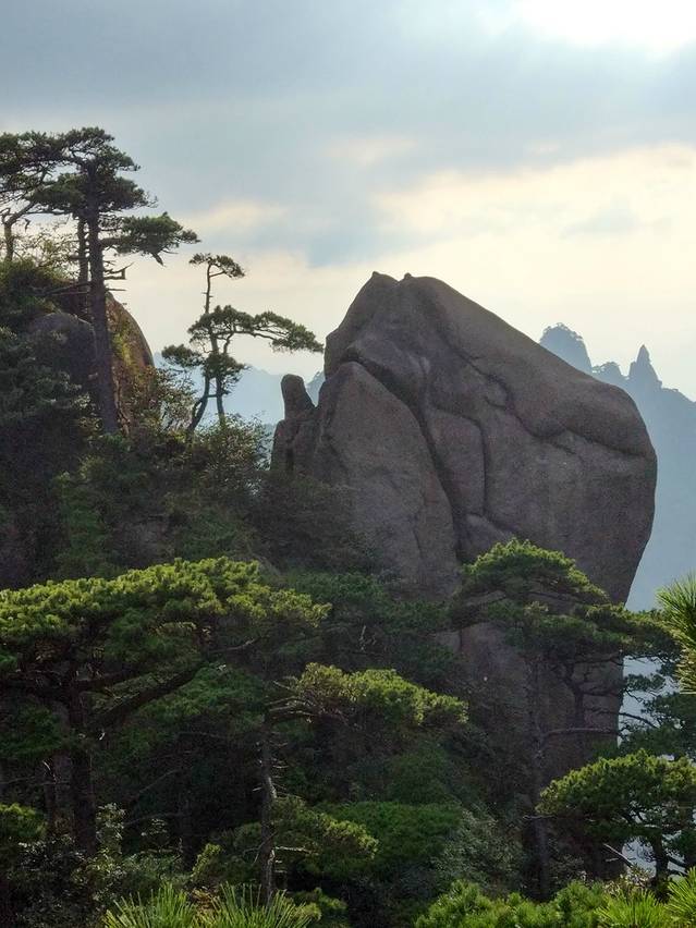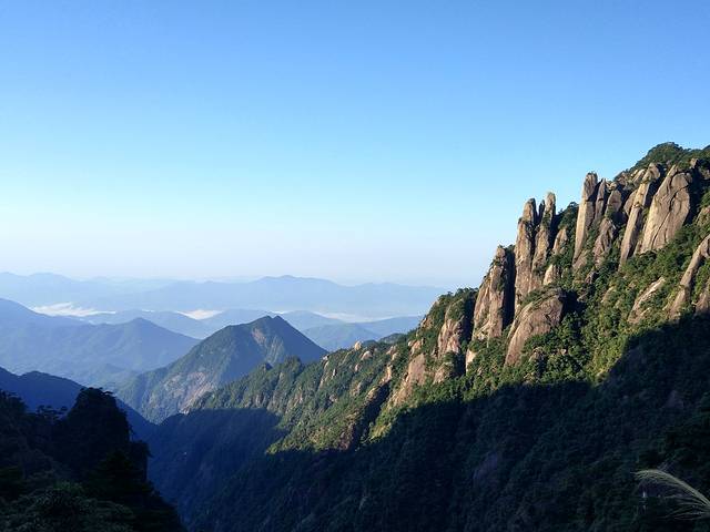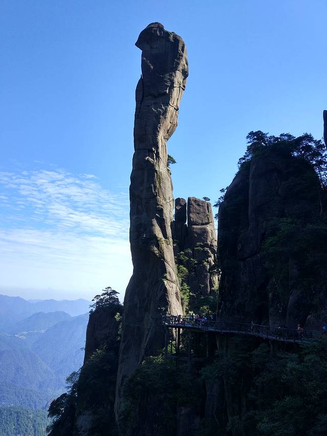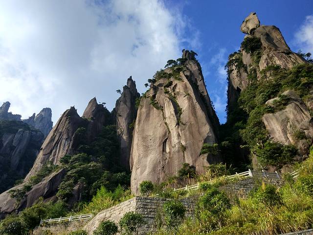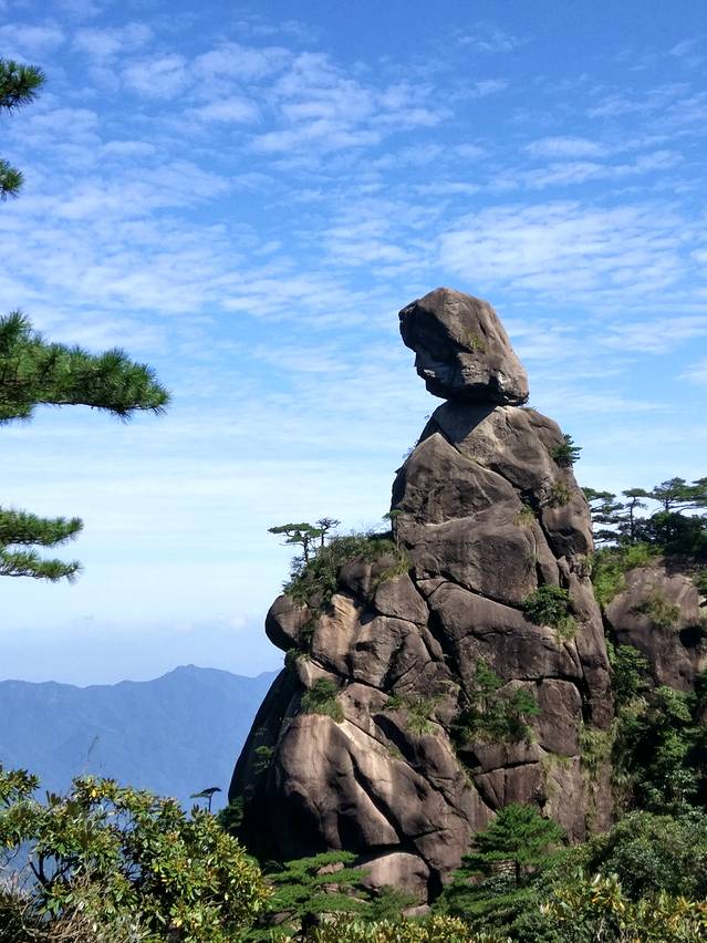 三清山 的美几乎可以和 黄山 相比,奇峰峻峭,奇石毕肖,奇松峥嵘。植被葱茏,花树繁茂,据说,这里的杜鹃都有上千年了,春天来,一定非常好看。从东门上去,先游南清园,观赏标志性奇石,巨蟒出山,思春女神,万笏朝天……,然后走 阳光海岸 。到西海岸和三清福地分岔口时是下午1点。我觉得反正晚上住山上,不着急,慢慢玩。就走上去三清福地的路。这一圈风景不太好,如果只安排一天游玩,可以不来这里。三清山的道观非常朴素,建筑很简朴。从三清福地到郁松林,再到西海岸,风景已经不像上午那样令人惊叹。到日上山庄时是下午4点,经典景区已经全部游览完。如果不为了看日出,可以下山了。附近还有万寿园景区,还有两个小时天黑,如果明天游览,就必须坐下午两点多的车去 婺源 。为了安全起见,明天再说吧。又用了1个小时,爬到玉台,找到订好的住处。打开网络,看到同学描述他住帐篷的遭遇,我要崩溃了!闹心啊。没办法,只能硬着头皮住下。因为是淡季,人少,老板同意给我两床被子。至少夜里没有冷得睡不着。老板说可以洗澡,我哪敢呀,多余把洗漱用品背上来!