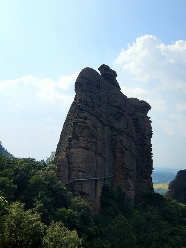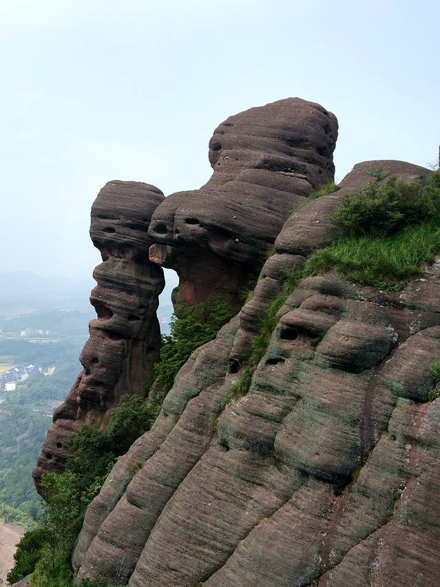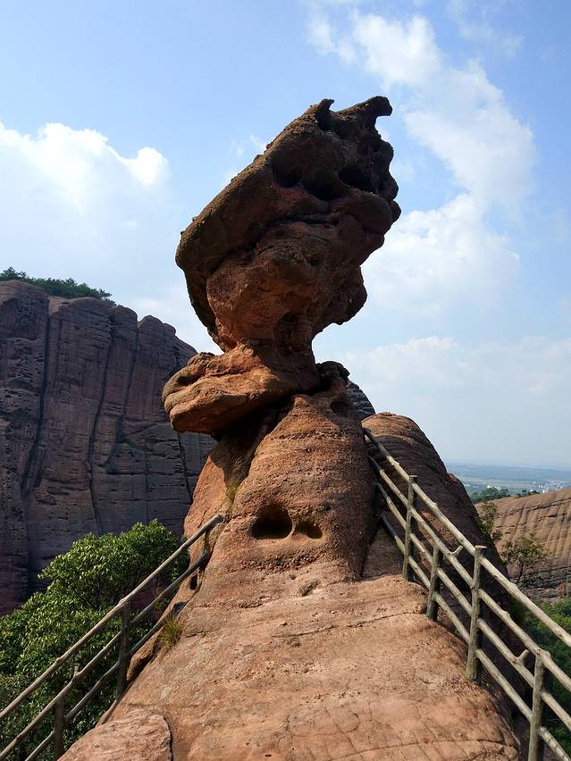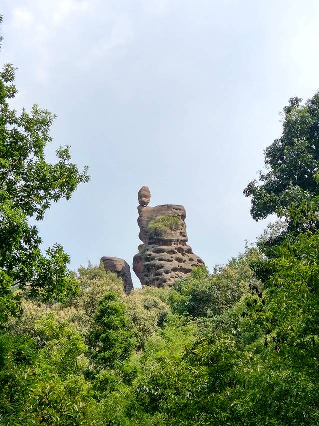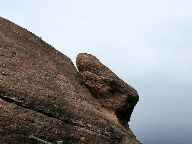 老人峰,头部与身体靠三块石头支撑,三足鼎立,倾而不落,斜而不坠。据估计头部石头重约6吨。